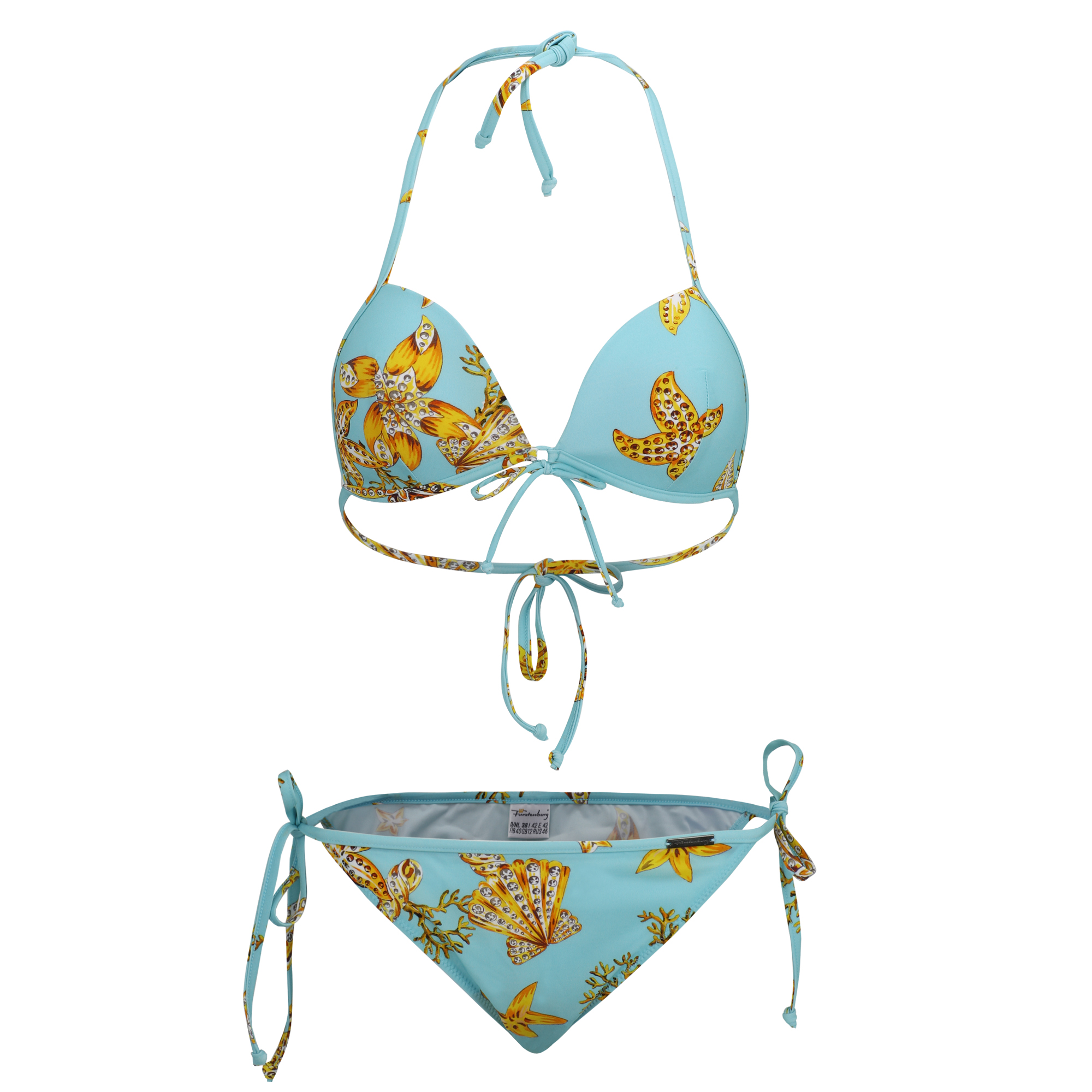 Der Bikini aus der Serie "Corallo Bay" bekommt durch die detailverliebten Verarbeitung einen feminine Touch, der Korallen-Print lässt sie in die Weite schweifen und bringt Ihnen ihr Urlaubsfeeling nach Hause. Details: Bikini mit Schale Korallen Print Verstellbare Träger Cup B Farbe: türkis-bunt, schwarz-bunt Material: 78% Polyamid 22% Elasthan